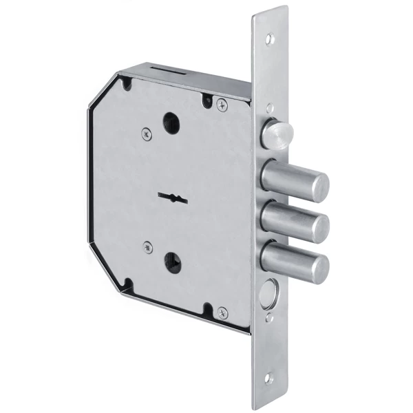 Плоскосувальдный, с двумя внутренними тягами, 3-х ригельный засов, диаметр ригелей, защелки и задвижки - 18 мм, вылет засова 40 мм за 4 оборота, 5 ключей в комплекте. 4 класс.