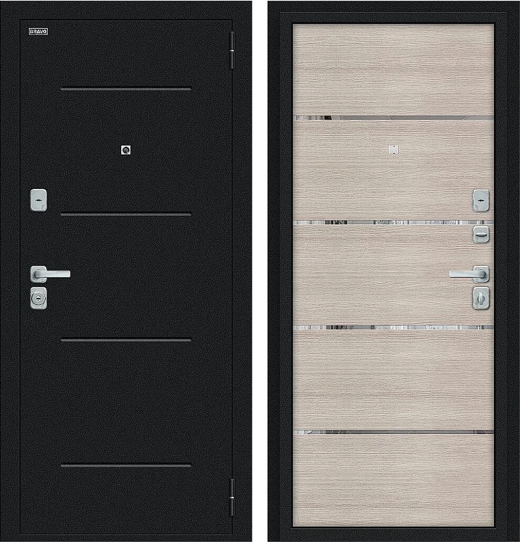 Дверь Браво Лайн/BChrome Букле черное/Cappuccino Melinga среднего ценового диапазона. Стоит дверь 27 200 руб. и это отличное соотношение цены и качества. Модель подойдет для установки, например в новостройку. Прослужит долго и будет надежной защитой вашей квартиры или дома.